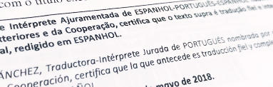 Traducción Jurada Español - Portugués de documentos oficiales.